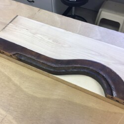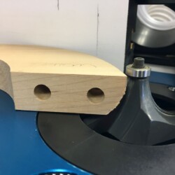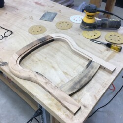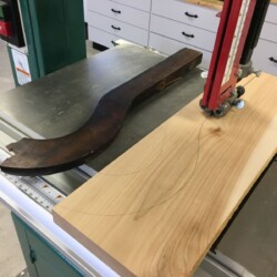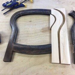 With the bare seat frame finally in hand, the determination to completely disassemble the loose dowel joints and fabricate a replacement for the badly broken side section was made. As the species of original wood was beyond my ability to identify, and have a fair amount of hard maple on hand, the replacement side section was duplicated from the broken piece. Since all the old glue had penetrated the end grain of the joints, two part epoxy was used to reassemble the seat frame, with two dowels at each joint.